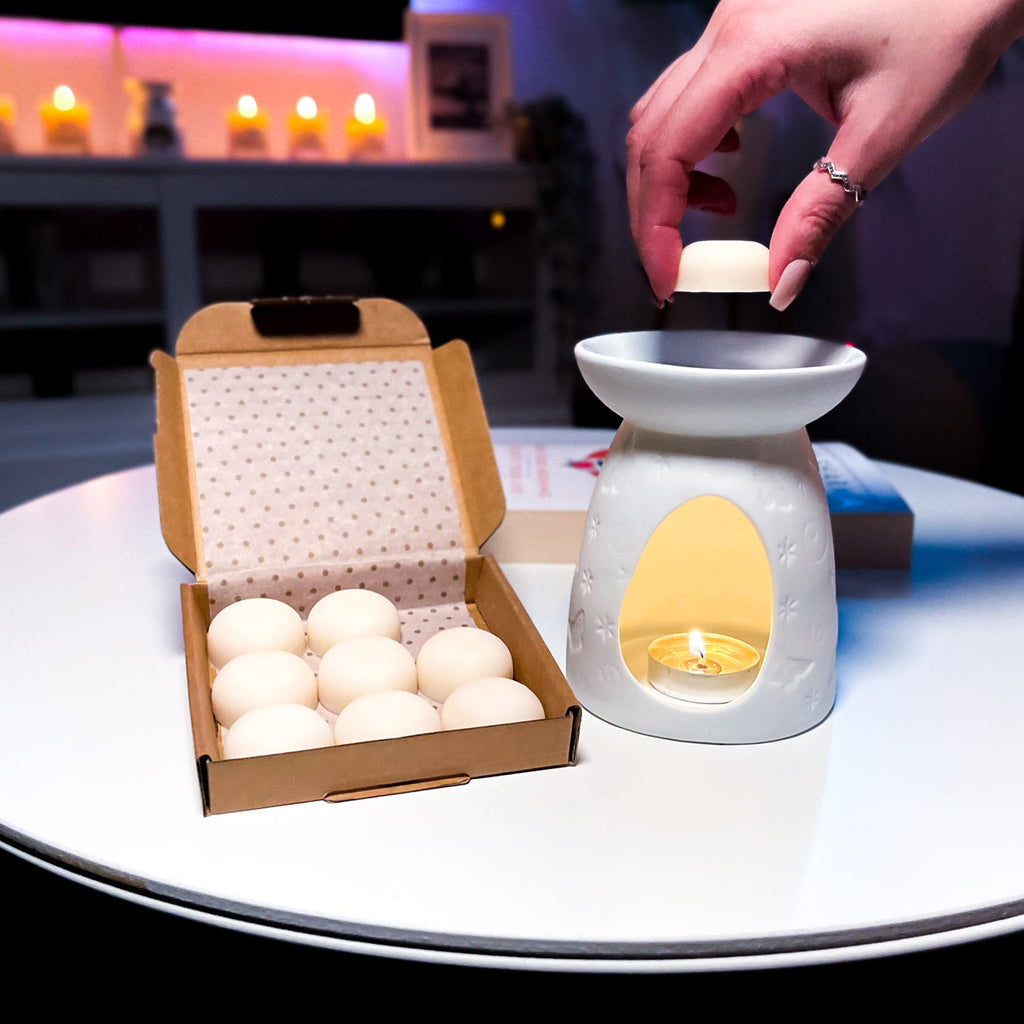 Add the wax melts to your burner and switch on (if electric) or light the tea light under the burner. Electric warmers take a little longer to warm up, due to the fact they do not use a direct flame. It is at your discretion how many wax melts you use in your burner, but please remember that when fully melted wax melts can overrun the burner if you use too many. Please think about the size of your burner when deciding to use more than one wax melt.